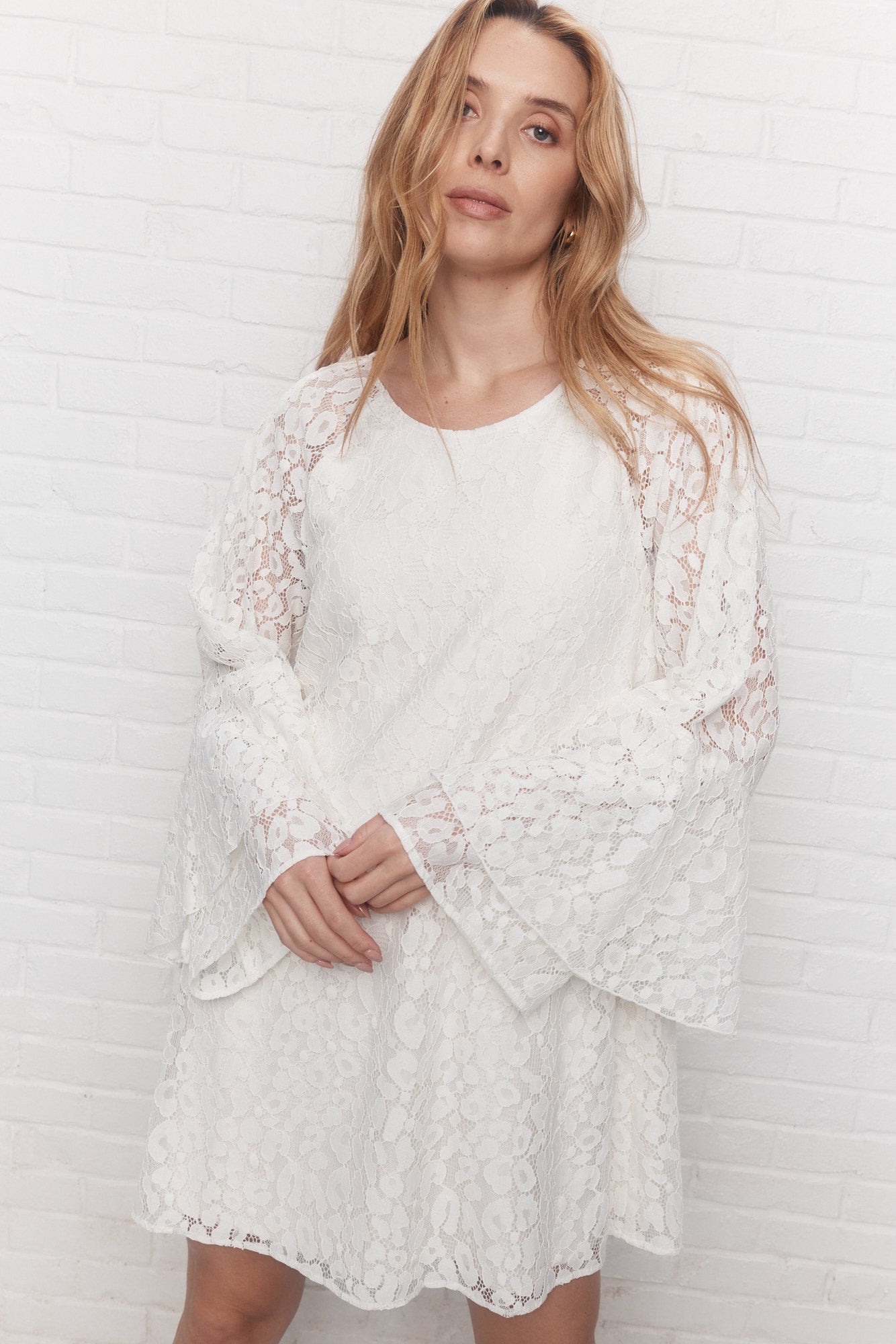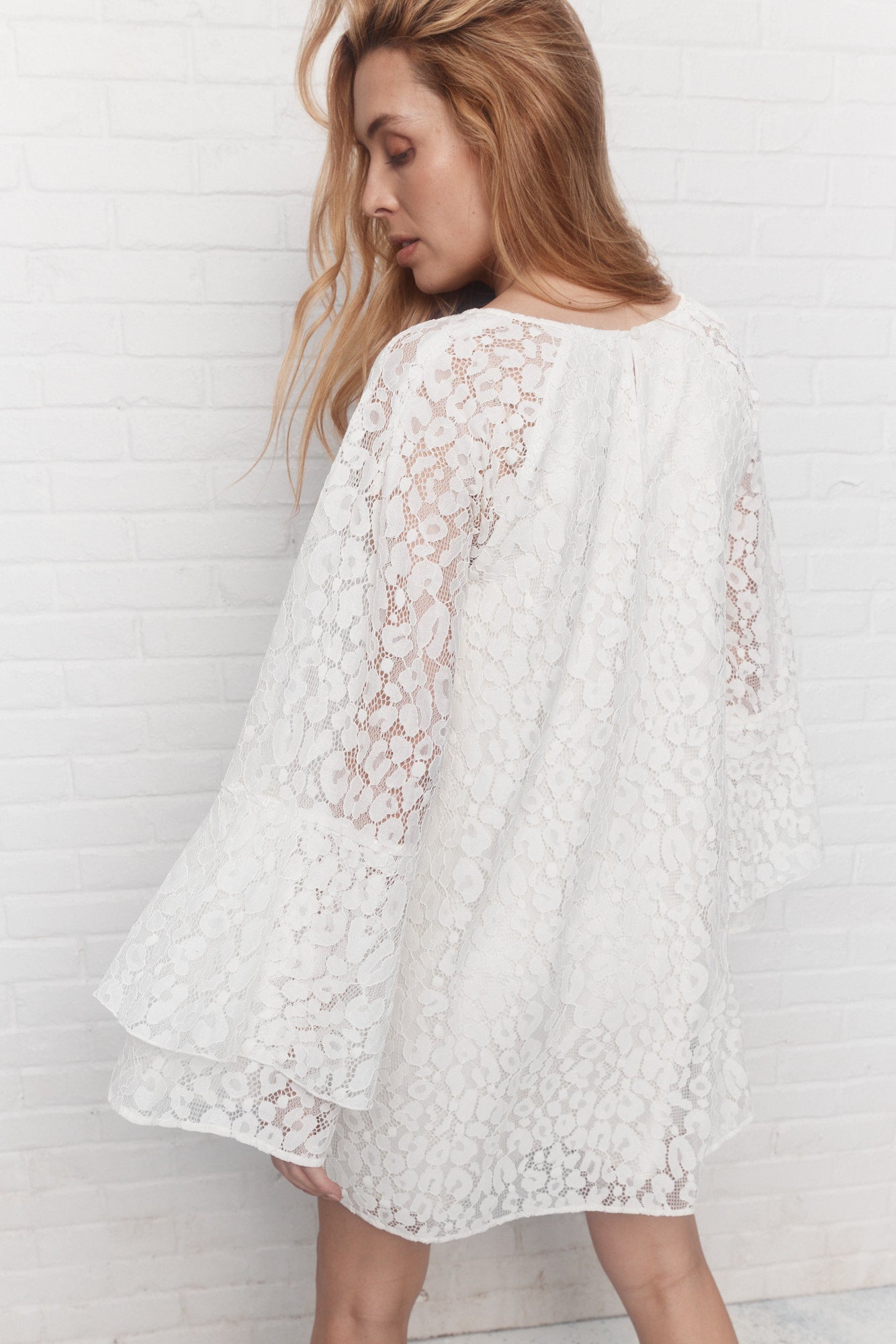 Opt for a delicate, airy look with the Tobia dress. Its lace and loose fit combine perfectly for a chic yet relaxed look. And what about its sheer ruffled sleeves: they breathe freshness and lightness.