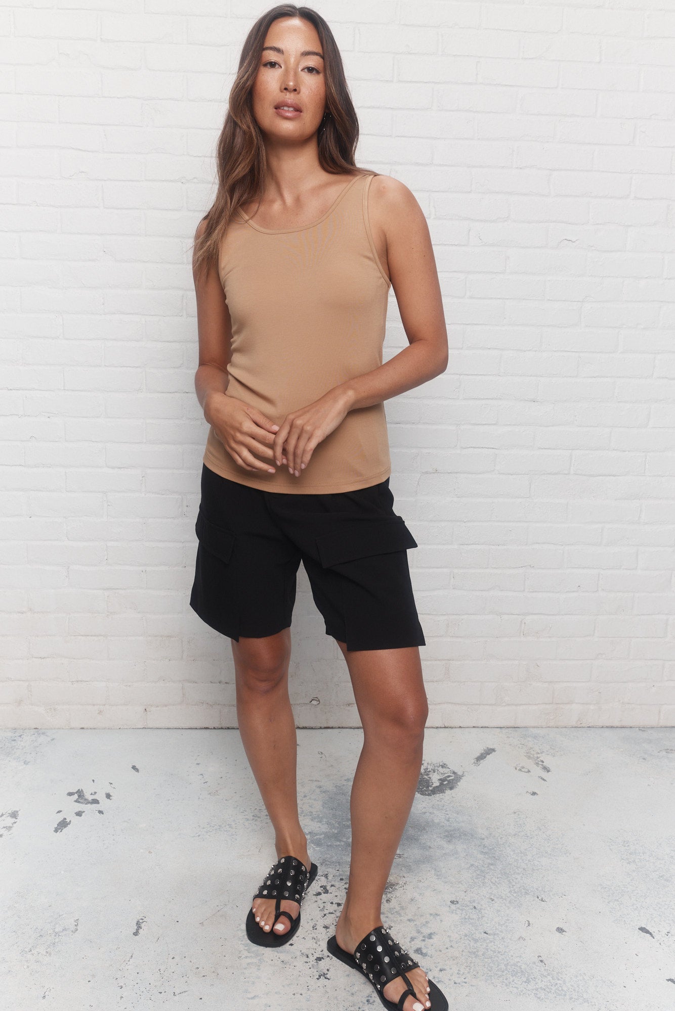 - Portez la camisole beige avec le bas désiré selon le look souhaité.