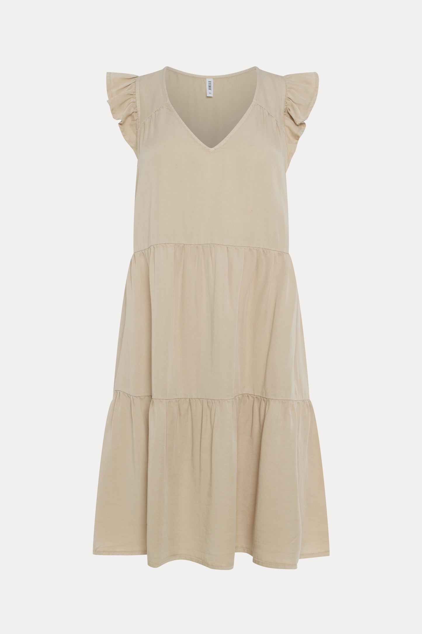 - Portez la robe beige avec nos accessoires et nos vestons pour une sortie.