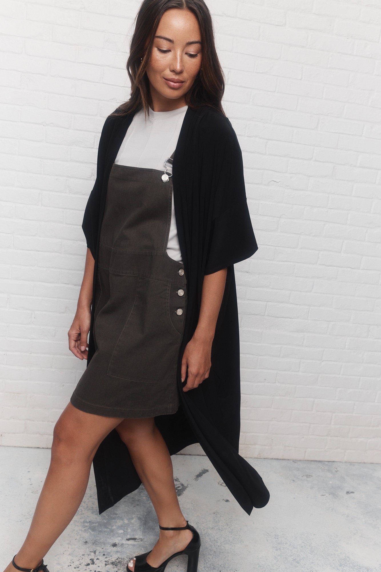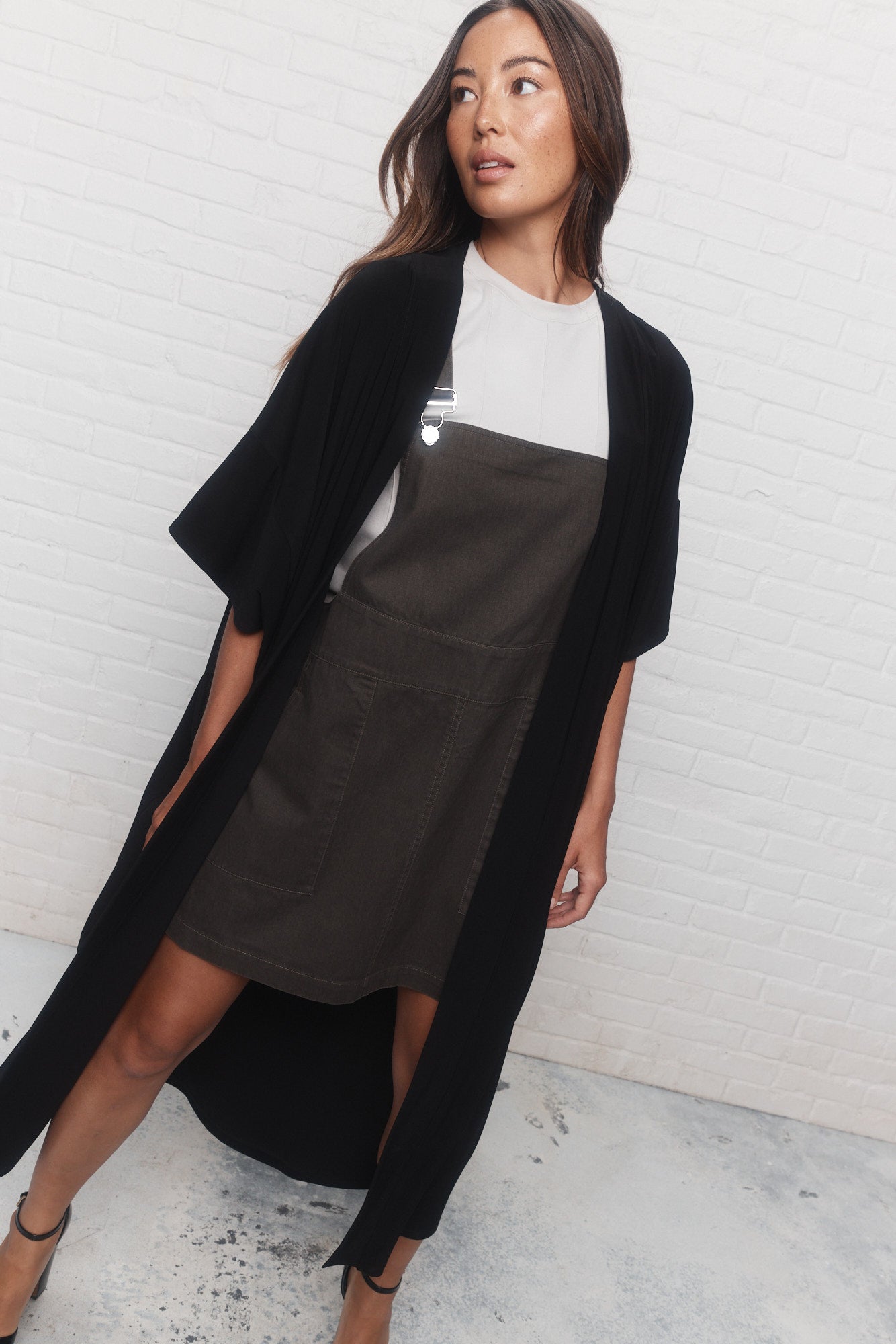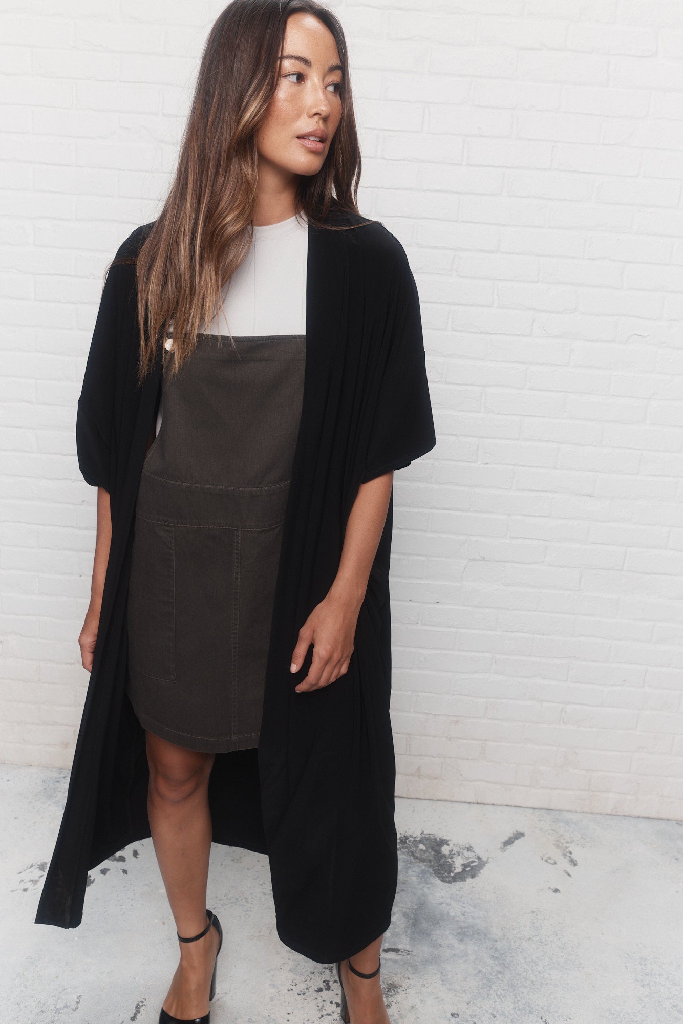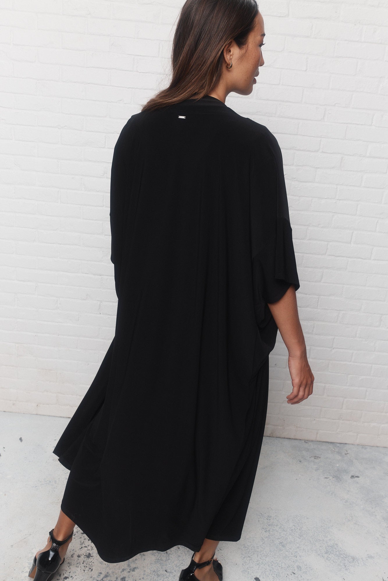 Intemporelle et minimaliste, la veste noire ample Irvine est un morceau passe-partout qui complète bien toute garde-robe intelligente. Sa longueur aux chevilles allonge la silhouette et son ouverture au devant sans attache permet de bouger confortablement.