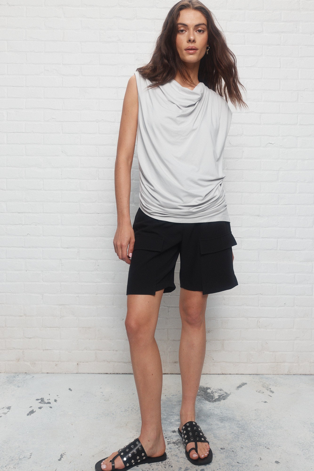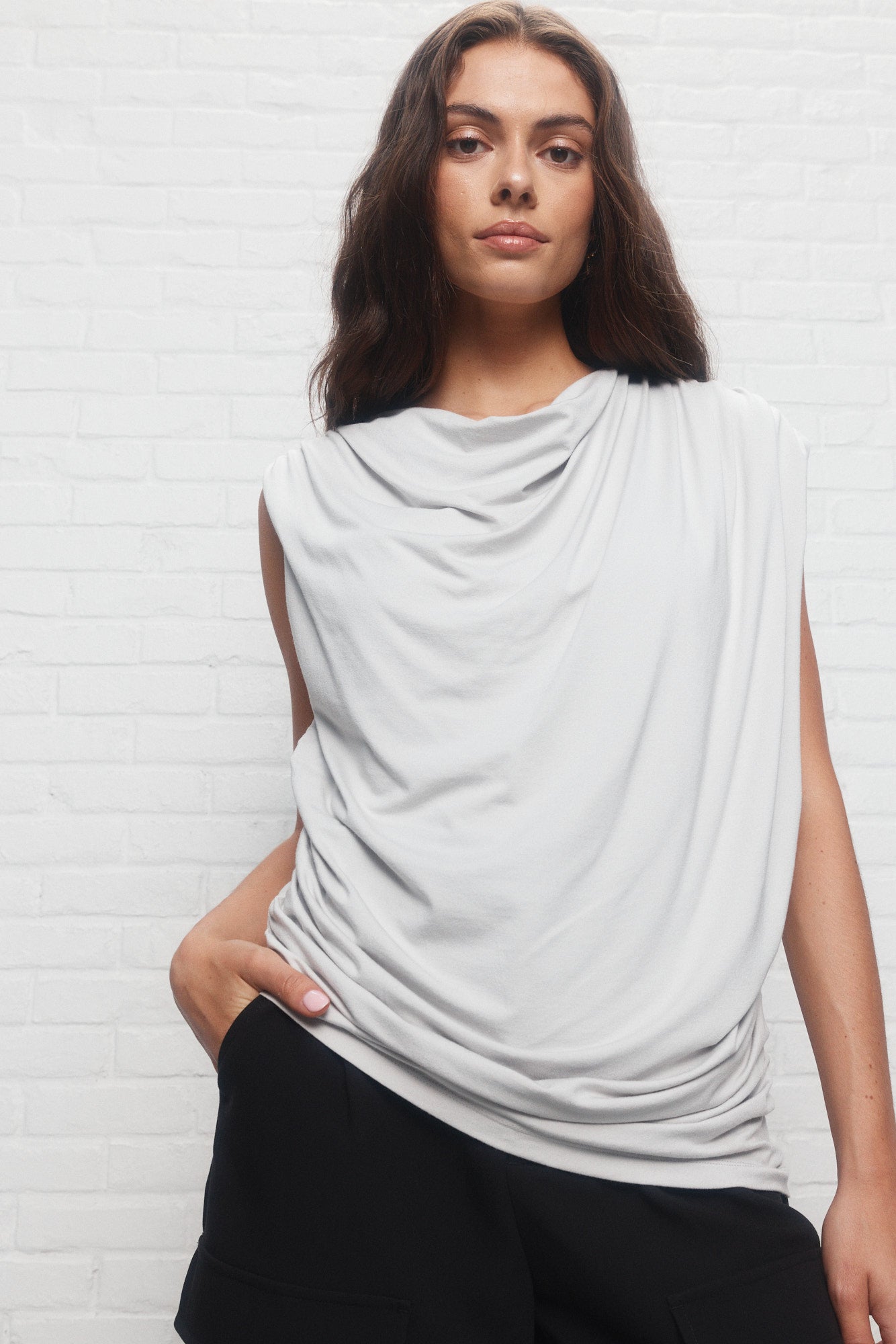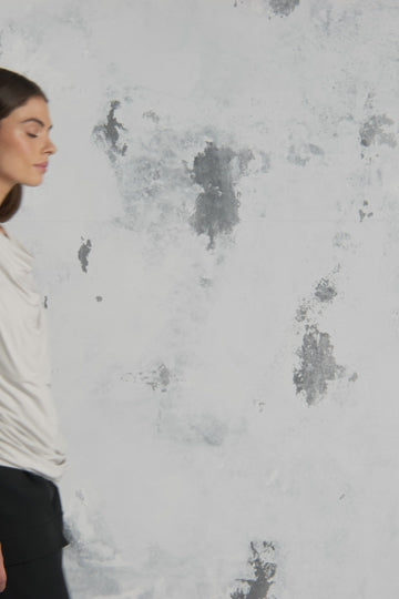 Marina | Le chandail gris drapé asymétrique