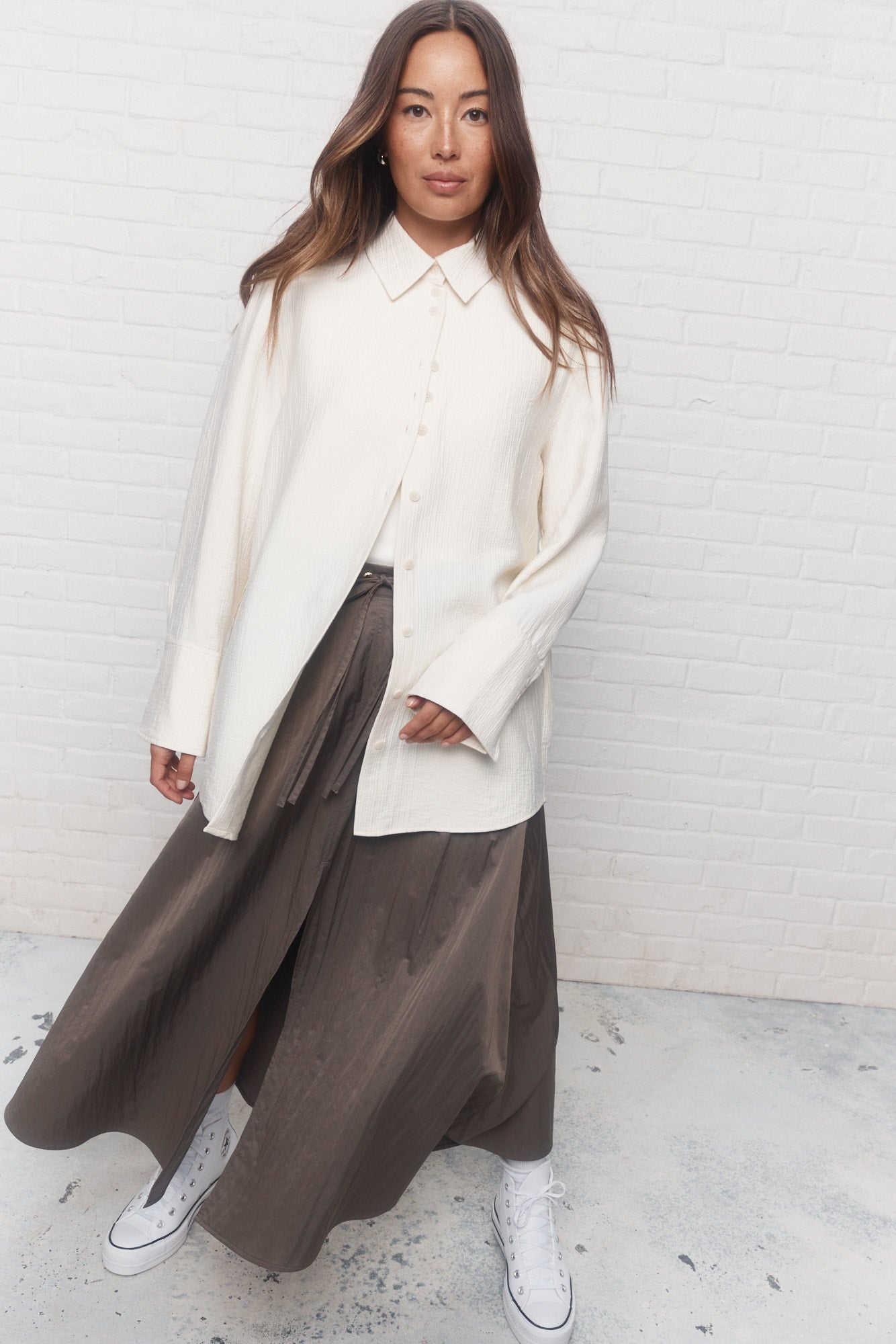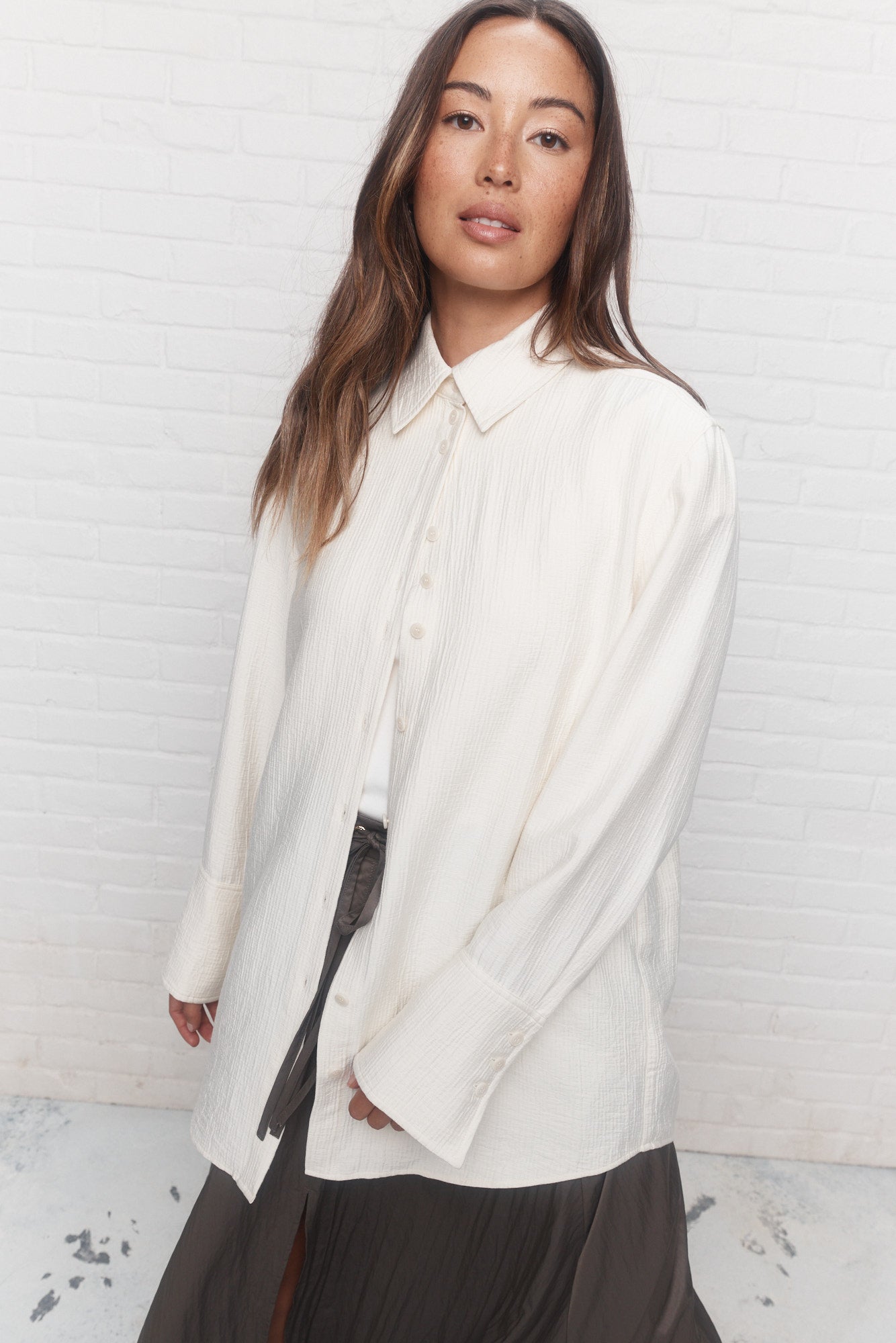 Une pièce essentielle haut de gamme qui vous accompagnera au fil des années. Grâce à sa coupe ample et fluide, la chemise Valentine peut être portée seule, glissée sous un chandail ou un cardigan, ou déboutonnée par-dessus une camisole. Agencez-la avec un pantalon habillé et un veston pour un style moderne et sophistiqué, ou avec un jean pour un effet plus décontracté.